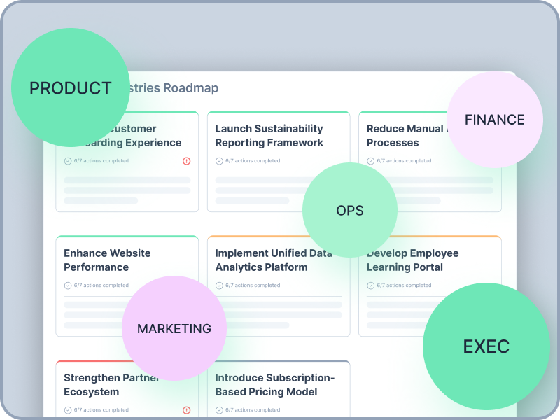 Your day-to-day work now drives strategic objectives with team visibility and accountability across roadmap, actions, and KPI’s.